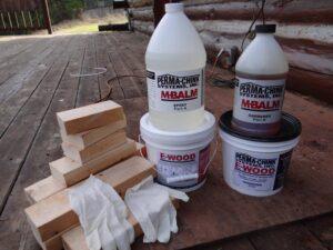 E-Wood epoxy can be stained with Lifeline stains during mixing or after application to match your log home color.