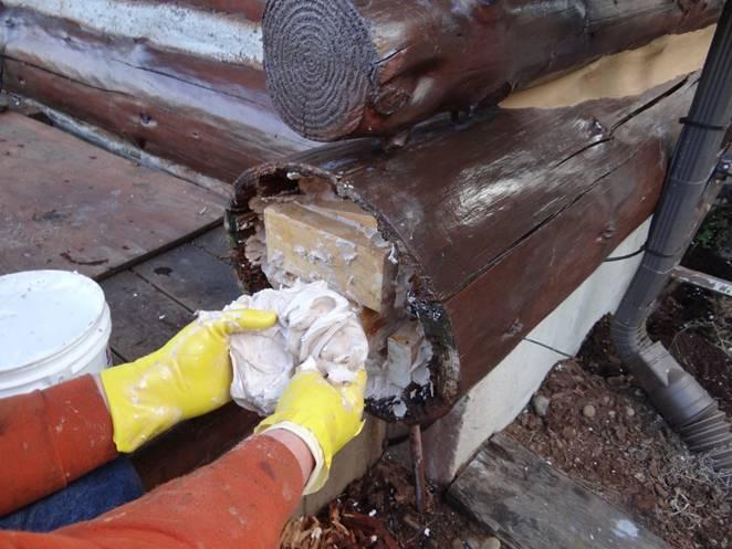 If you do discover decay in your logs during inspections, it can most likely be mitigated and eliminated without the need for a costly log replacement. If the decay does not exceed more than half the depth of the log, or only a few feet lengthwise, use M-Balm and E-Wood.