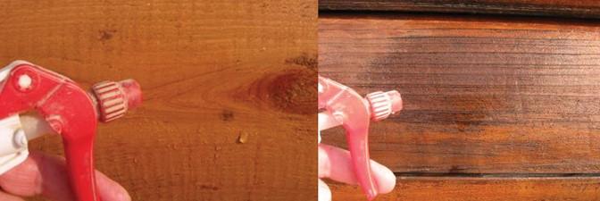 Washing your home is also the perfect opportunity to do a water test, which tells you if you need to reapply a topcoat or the stain. When you wash your home, if you see water sheeting over the logs and being repelled, it’s a sign that the finish is working. If you’re unsure, perform a spot test by using a spray bottle filled with plain water to spritz a small section of the dry log with water. If the water soaks in, it’s an indicator that you need to re-apply the finish. If it beads up, your finish is working and you’re in good shape.
