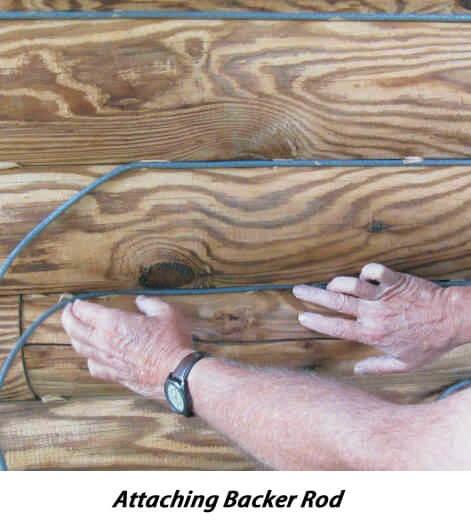 There are a number of products specifically designed for use as backing materials for sealants. For smaller gaps, joints and cracks the most commonly used material is round backer rod. It comes in a range of sizes and is relatively inexpensive. Since it is flexible it can be pushed into a crevice without needing to be nailed or stapled. Grip Strip is designed for sealing larger gaps. Similar in composition to backer rod, it is shaped like a trapezoid so it can be squeezed in between round logs although it can be used in a variety of situations. It provides a flat surface for chinking or sealing.