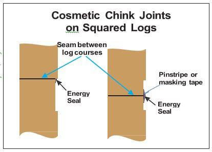 We rarely see squared log chink joints less than 2” wide, so Energy Seal or Woodsman is seldom used in these situations. However, for cosmetic chink joints less than 3/8 inches deep we recommend sealing the seam with Energy Seal and then applying Chink Paint over the entire joint. On the other hand Energy Seal is often used on squared logs for sealing corners, butt joints, widows, door frames and other areas where a visible chink joint is not desired.