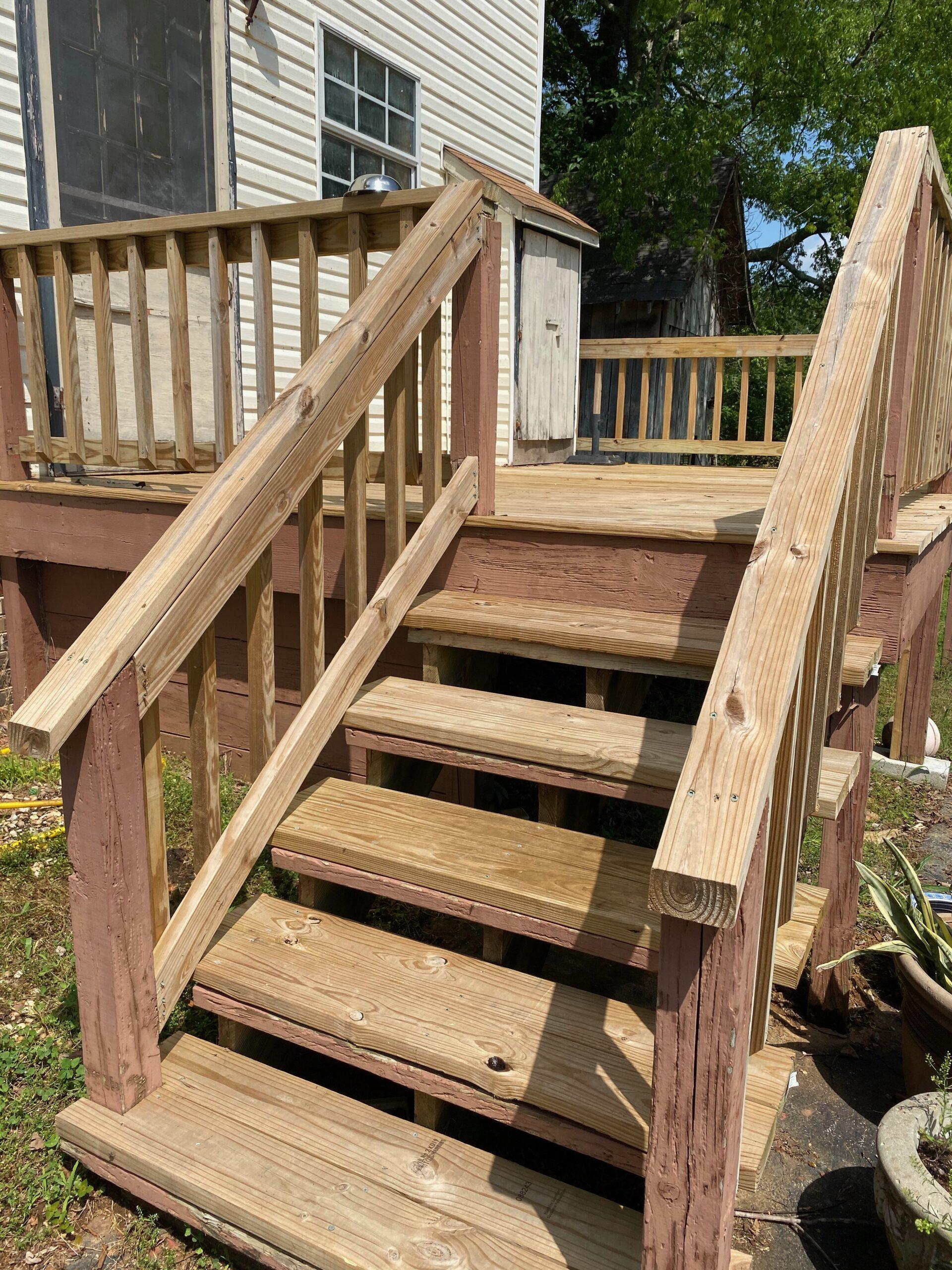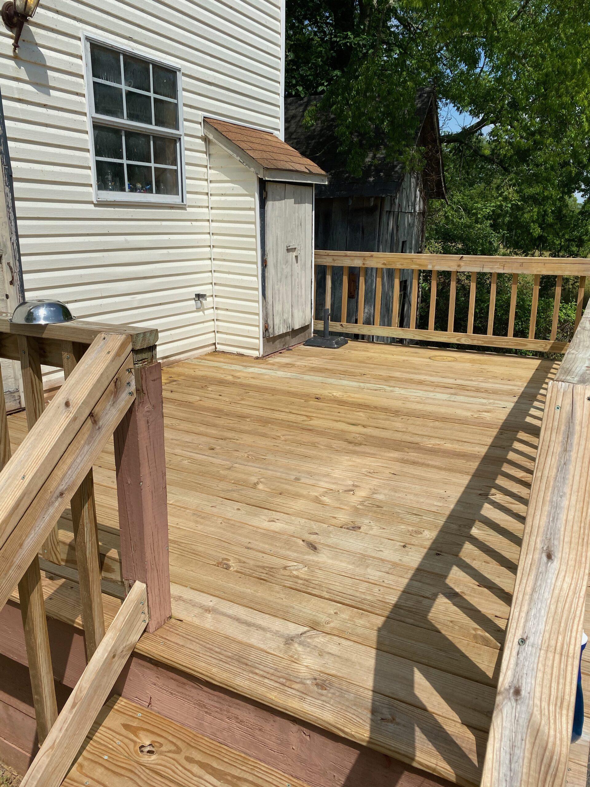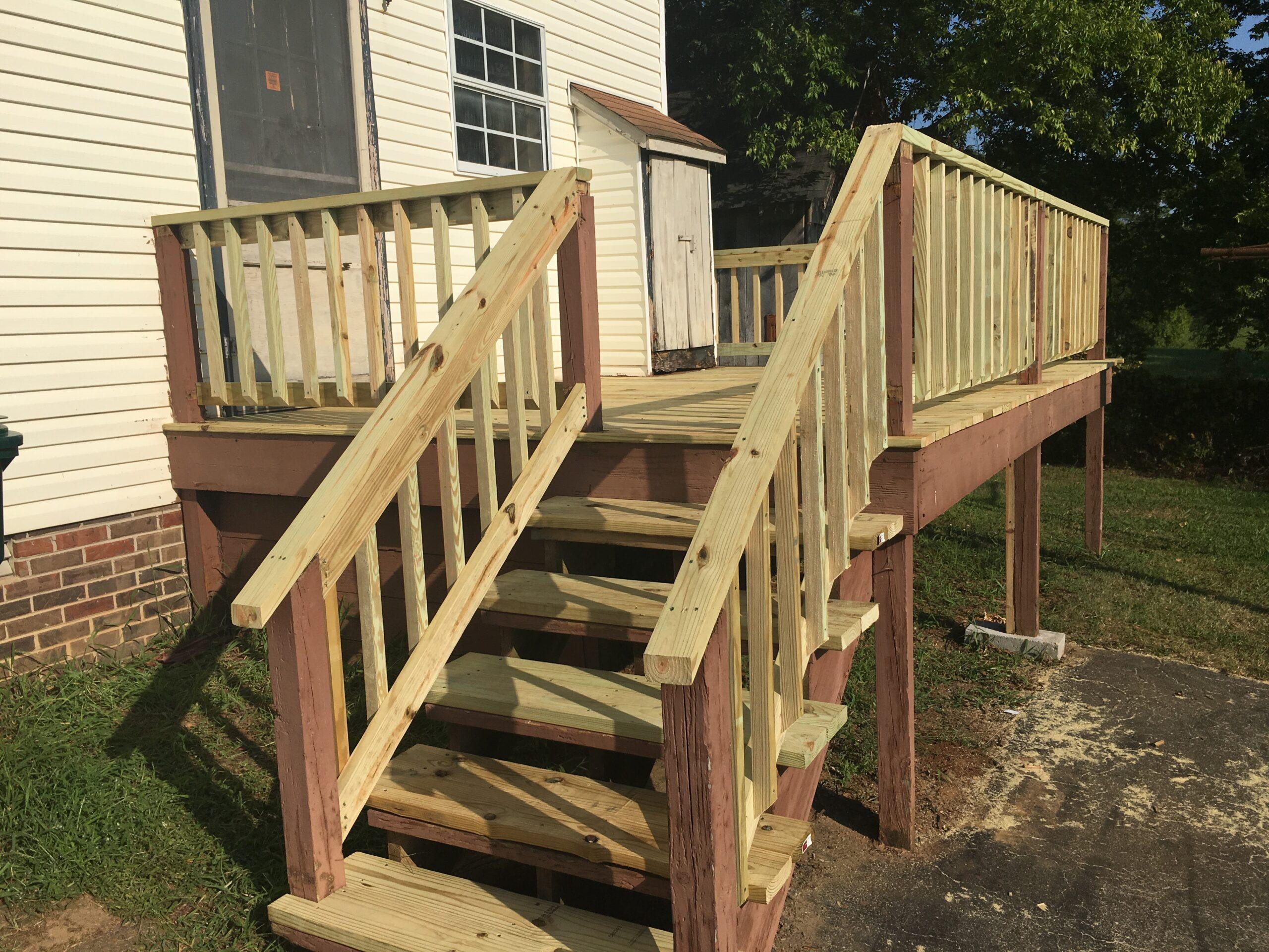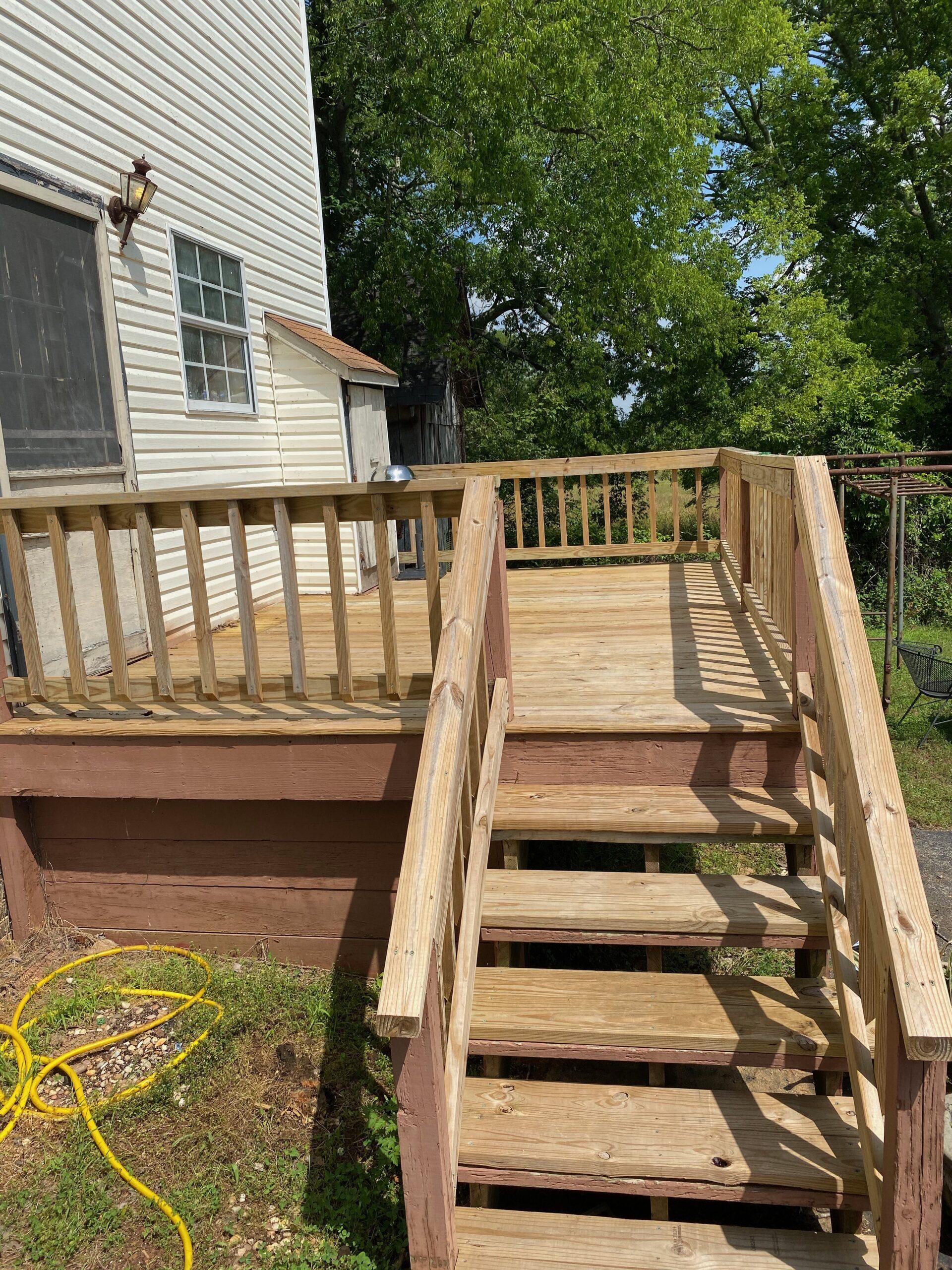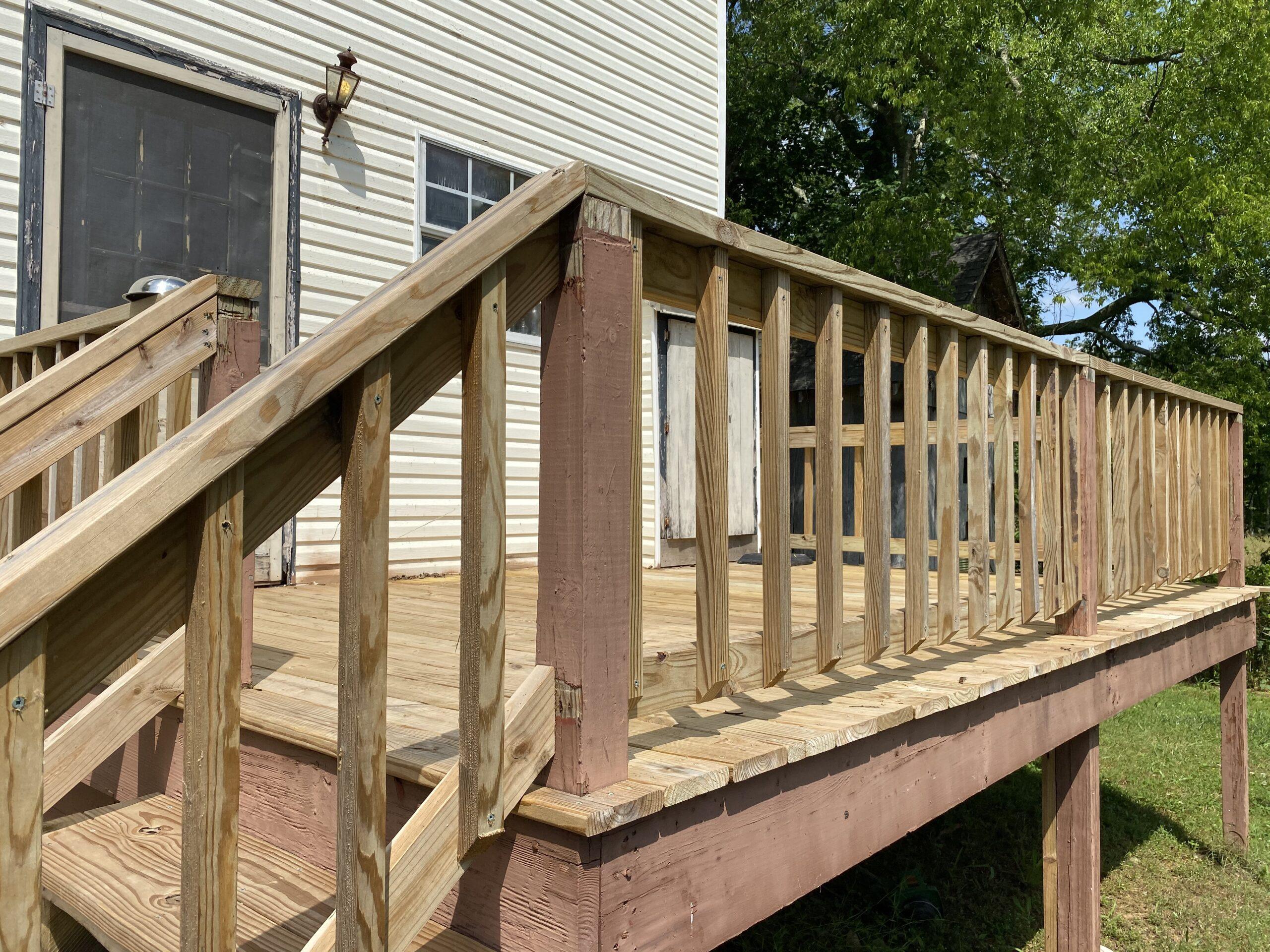 Once all the deck boards and railings were removed, we hired a carpentry service to install all new wood again.