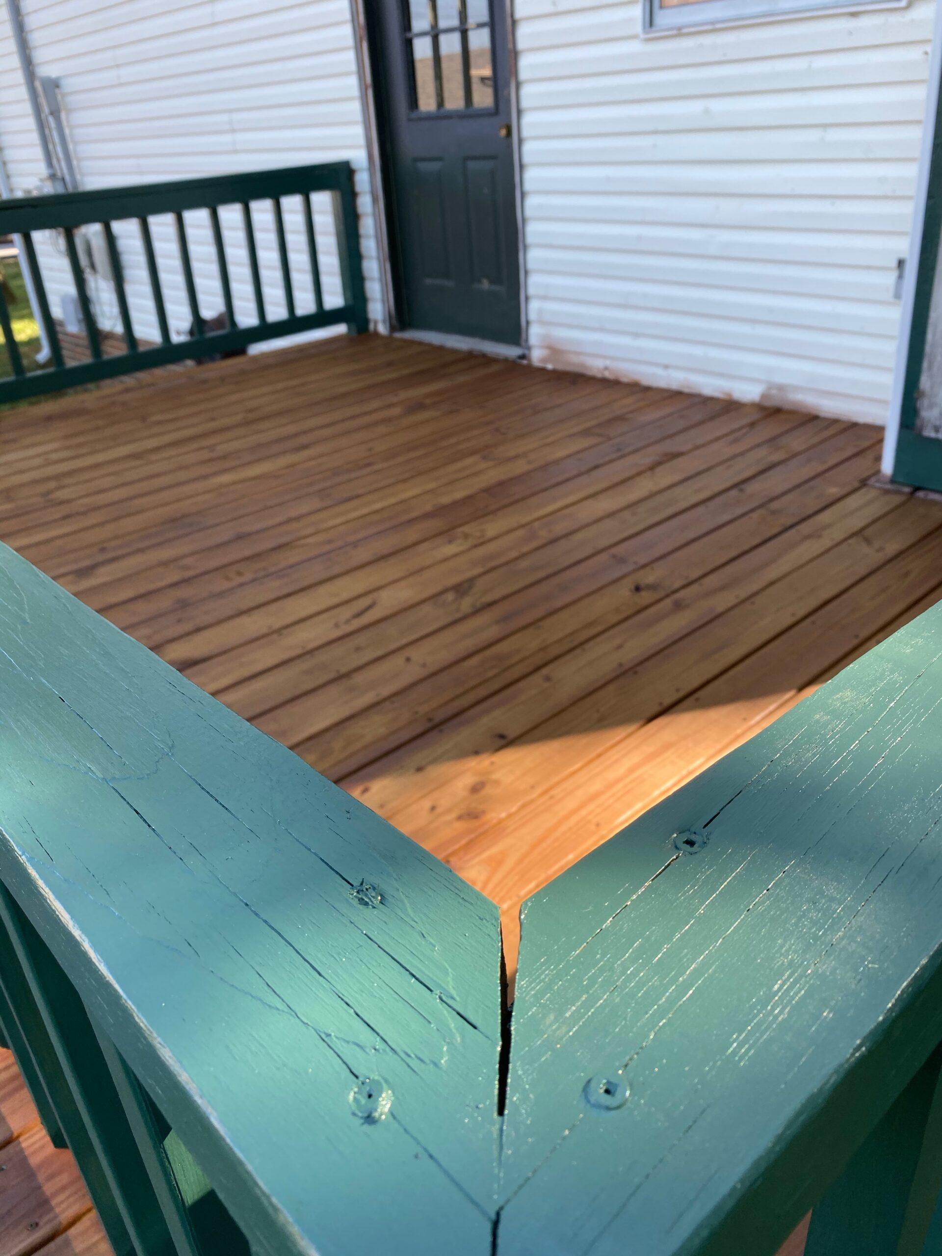 With the inside of the house finished and ready to go, a new renter moved in whose priorities did not immediately include the need or use of the wooden deck outside the kitchen door. The deck was built as an original feature of the house in 1990 and was much-used when my wife was raising her children there. Most of the outside woodwork of the home was in need of painting or replacing. To put it more correctly, it looked sad. We agreed to wait until the following spring to tackle the deck and front porch needs.