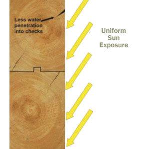 The profile of the logs has a significant impact on the weathering characteristics of a wall. The effect of sunlight and the weather on round logs is altogether different than on square logs or flat, vertical siding.