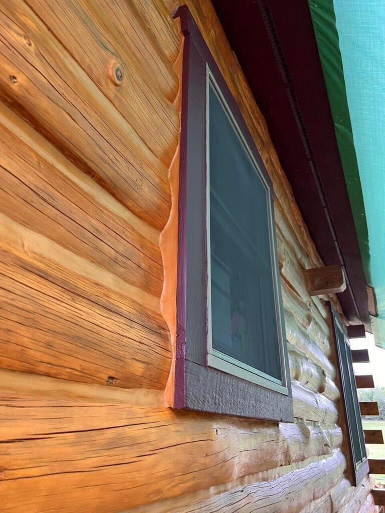 After a borate treatment with Shell-Guard was completed, M-Balm was injected (squeeze bottle) within the log cavity. M-Balm not only hardens the wood, but also stops any further spreading of wood rot. Following the treatment of Shell-Guard and Oxcon to brighten the wood, Chris installed one window to the left for better appearance of this home. Now that house is protected against wood-destroying insects, an application of stain and topcoat will not only enhance your home’s aesthetic appeal, but will offer protection as well.