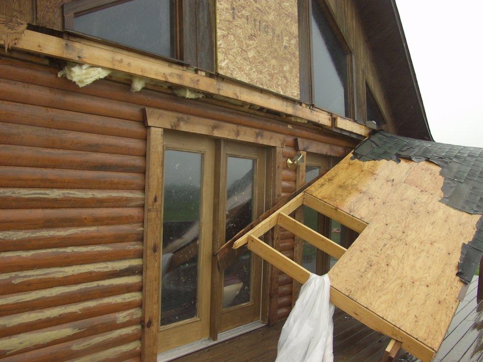 Use a cleaner like Log Wash to clean off dirt. Do not try to be aggressive with the power-washer, you just want to rinse the dirt off. Some of the wood trim components that were engineered – like finger-jointed trim materials – may swell and need to be replaced. Exterior doors and windows (especially wooden ones) should be carefully examined and may need to be replaced as well. Insulated metal and fiberglass doors that get wet sometimes look fine, but they can hold water inside for a long period of time and eventually deteriorate.