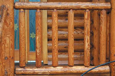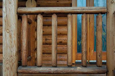 Another problem with green handrails is that all finishes have difficulty adhering to damp surfaces. Green logs normally do not present the same difficulties as handrails since it usually takes several months for logs to go from the debarking process to construction, time enough for the surfaces to dry. In the case of handrails, it may only be a week or two from the time they are debarked to when they are installed, not enough time for even the surfaces to dry.