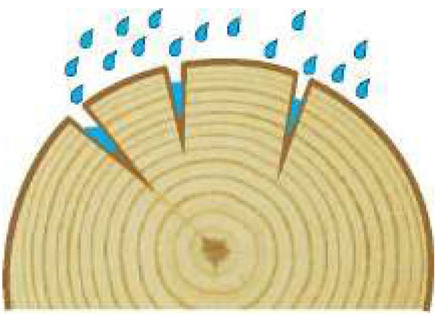 Wood is a hygroscopic material, which means it naturally absorbs and releases moisture from the environment. Logs can safely absorb large quantities of water before reaching moisture content levels that will be inviting for decay fungi.