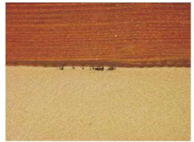 4. If, after steps one or two, there are still dark streaks or discolorations on the surface, use a solution of OxCon™, which contains oxalic acid, on the entire wall according to the directions for use. Rinse well and allow the wood to dry before staining.
