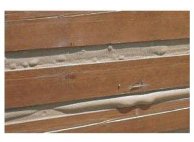 Only those products recommended by Perma-Chink Systems should be used as backing materials for Perma-Chink Log Home Chinking. Some blisters can be directly attributed to the application process. If the chinking is “trowelled” in by hand, small pockets of air can become entrapped during the process. It is very important to “mash” out the chinking in order to work the air out.