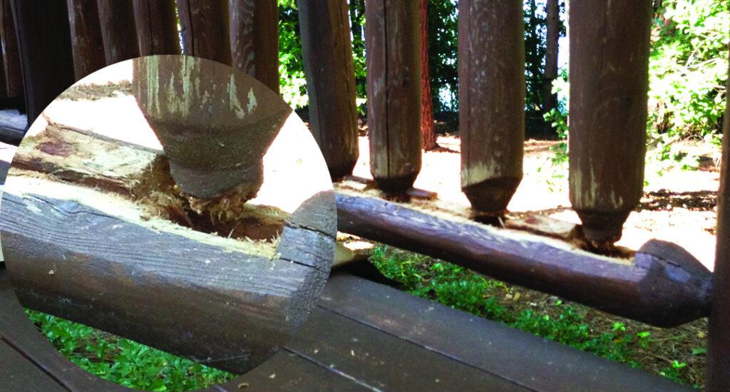 Your handrails and railings have suffered and now you have some rot in the railings. Now what? Before you replace the entire railing, you might be able to salvage what’s left of the wood and repair it with E-Wood paste. To save the rails, remove any loose or decayed wood, and brush away any debris. For best results, apply borate wood preservatives to stop rot. Allow to dry and apply M-Balm, a wood consolidator that helps harden damaged wood. Then apply E-Wood paste to replace the damaged wood, shaping it to match the natural contour of the wood. Allow the E-Wood to cure before applying a stain, which will result in a natural-looking repair.