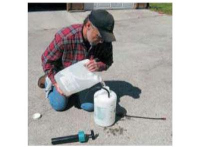 Any type of pump-up compressed air sprayer is suitable for applying Shell-Guard RTU, diluted Shell-Guard Concentrate, or solutions of Armor-Guard. Either a cone or fan spray tip will work. Do not attempt to use an airless sprayer. Airless sprayers put out a fine liquid mist that can be carried away with even a slight breeze. In addition, the high surface area of the small droplets allows the water contained in the solution to rapidly evaporate leaving behind a high concentration of borate and in the case of Shell-Guard RTU and Concentrate, mixed glycols that form a sticky film on the surface of the wood rather than penetrating into the wood.