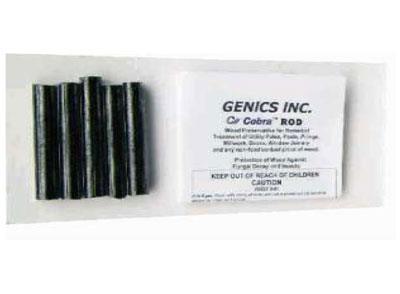 Cobra Rods may be used to help eliminate an existing localized decay problem, or to prevent decay from talking hold in a high risk area like the bottom of a support post. They may be installed in wood members that are bare or have already been finished. Cobra Rods are two inches long and although are labeled as being 1/2” in diameter, they are actually 7/16” so they easily fit into a 1/2” diameter hole. A black plastic plug is supplied with each Cobra Rod.