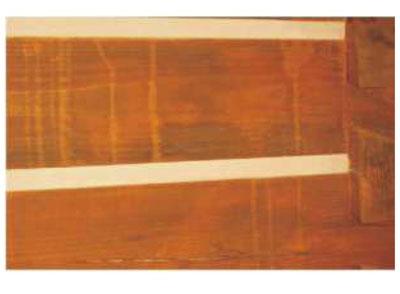 Using wire brushes, steel wool or metallic abrasives to aid in the removal process of old finishes, or smooth the surface, will definitely create discoloration problems. Small bits of metal will be deposited on the wood, and the use of these materials should be avoided at all costs.