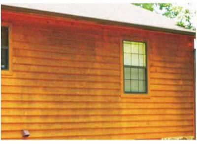 Chlorine bleach destroys lignin, a component of wood that hardens and strengthens the cell walls. Once the surface cellular structure loses its integrity, film-forming finishes like LIFELINE™ have no sound wood to bond to, and can peel off. The picture at right is a typical example of what can happen when a high concentration of chlorine bleach is applied to a home.