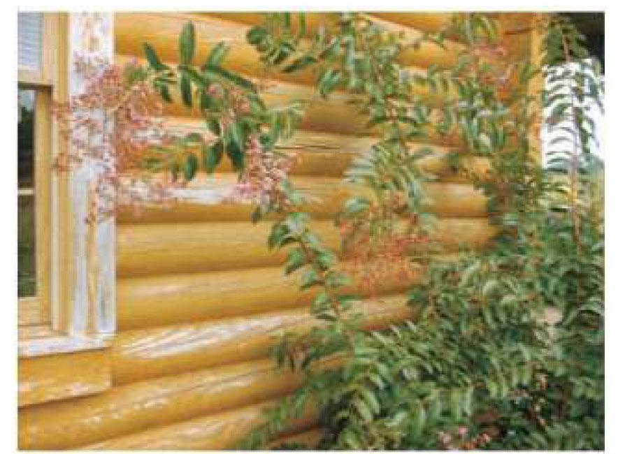 The next things to consider are shrubs and hedges planted next to your foundation. Over the years you’ve probably let them grow too large, and they may be getting close to your log walls, or even worse, actually touching the logs. In addition to keeping the logs damp, shrubs and hedges can actually wear the finish right off of the wood. You need to trim them back, if for no other reason than they are hiding the beauty of your home. There should be at least two (2) feet of clear space between any plants and shrubs and your foundation or log wall. This allows air to flow over the logs which helps keep them dry and free from insects, mold, algae and decay.
