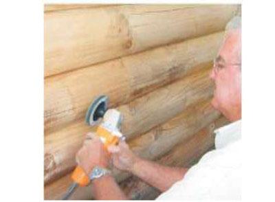 Step 7: If pressure washing the wall has feathered the surface you may wish to lightly sand it or use an Osborn Brush to remove the feathered wood fibers. Never use sandpaper or Osborn Brushes finer than 80 grit on exterior surfaces. Sanded or brushed surfaces MUST be washed with two cups per gallon Log Wash solution and the surface allowed to dry before the first coat of finish is applied.