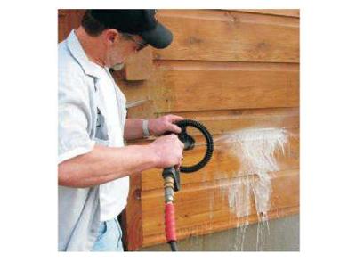 Although we rent and sell the Blaster Buddy™ and furnish crushed recycled glass blasting media, we usually advise do-it-yourself homeowners to use chemical finish removers along with pressure washing because the process can be easily accomplished by an average homeowner. And since it is less susceptible to surface damage, chemical finish removers result in a more attractive finished surface.