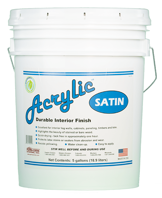 Lifeline Acrylic is a furniture grade clear coat for interior use. Lifeline Acrylic forms an attractive and durable protective film that adds sheen and makes cleaning wood surfaces a breeze. It can be applied onto Lifeline Interior or Prelude or directly over bare wood. Acrylic Gloss and Satin are an excellent finish for highlighting interior log walls, cabinets, paneling, timbers, trim, railings and other vertical wood surfaces. The resilient acrylic polymers in Acrylic Gloss and Satin help protect water-based stains, paints and sealers from abrasion, wear and water damage. The smooth finish provided by Acrylic Gloss or Satin makes woodwork easier to clean.
