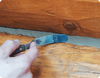 With light pressure, slide flat-bladed tool along sealant to smooth and ensure adhesion to logs.
