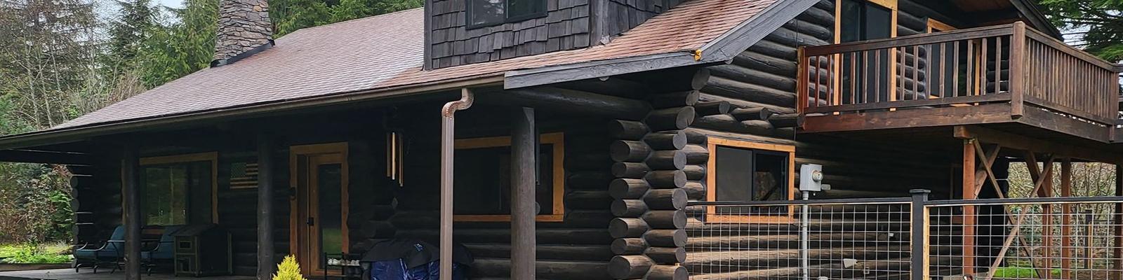 We offer two cleaners, Log Wash and Cedar Wash. Most log homes will use Log Wash, but homes with Cedar, Redwoods, etc., will need Cedar Wash. Read more about choosing the right one here.