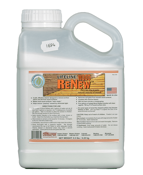 Therefore, we have decided that the only cleaning products approved for use with our finishes are those products supplied or recommended by Perma-Chink Systems, Inc. We are not doing this to increase our sales of cleaning products. It is because we have tested our cleaning products with our finish systems and have confidence that when properly used and applied, their use will result in the best possible appearance and performance of the final LIFELINE finish. We can not say the same about the use of other types and brands of wood cleaners, and strongly discourage their use with any of our LIFELINE stains.