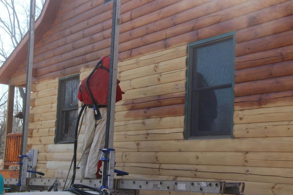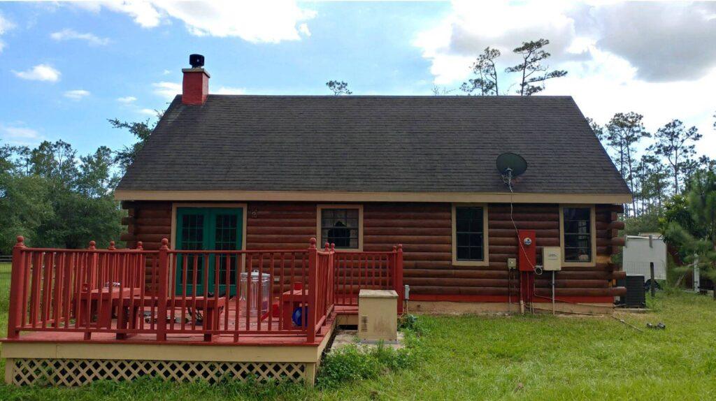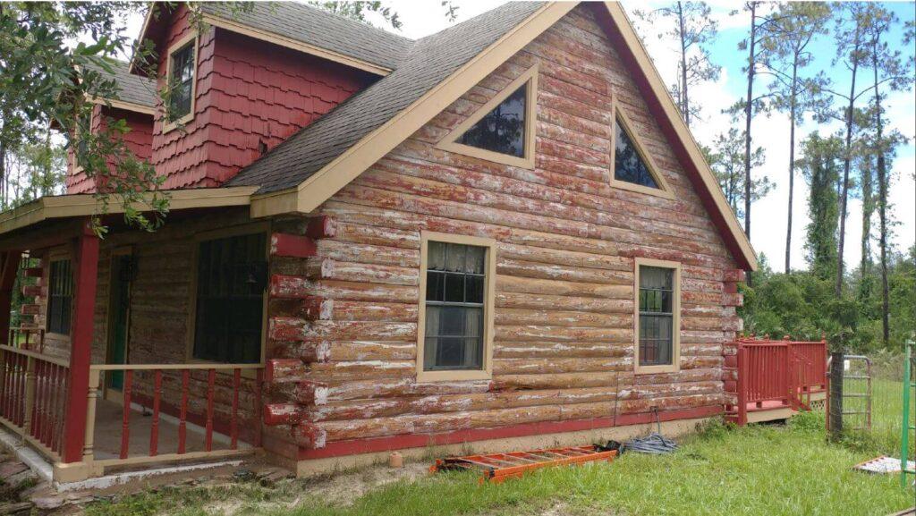 This painted log home is a hunting cabin located in Okeechobee, FL. The home owner was having issues with rot and needed a solution. Removing the paint was the first thing we suggested and we informed him of the damage painting logs can cause. The customer agreed to move forward with removing the red paint that covered this beautiful home.