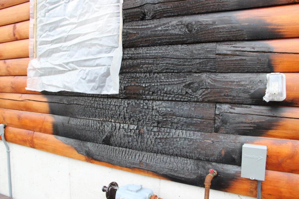 This was an interesting project involving fire damage to one wall of the log home. The clients had built this lovely log home, and one evening, while inside watching TV, they heard a car pull into the driveway and start honking their horn. The family immediately headed outside to see what was going on, only to find out their propane tank was on fire and had spread to the house. Everyone jumped into action, and with the help of the local fire department, extinguished the fire before it burned the entire house down.
