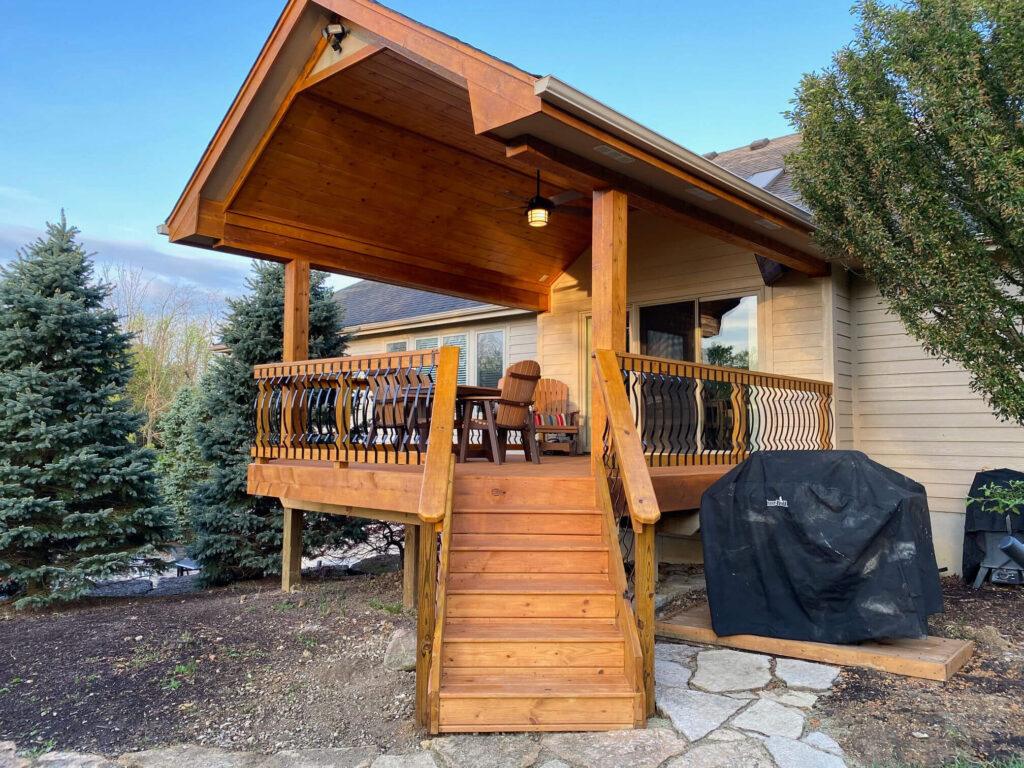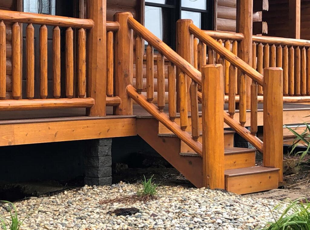 Log Home Care finished this project using Lifeline Ultra-2 Natural with Advance Gloss topcoat, and Deck Defense Harvest Wheat.